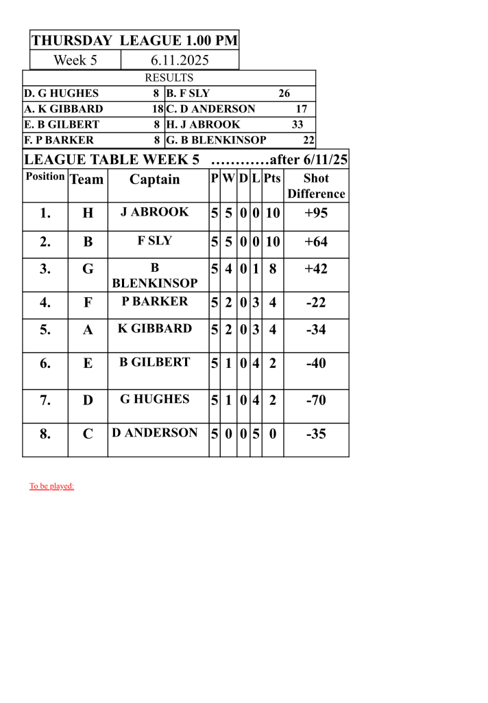 • Thursday IDB Results Week 5