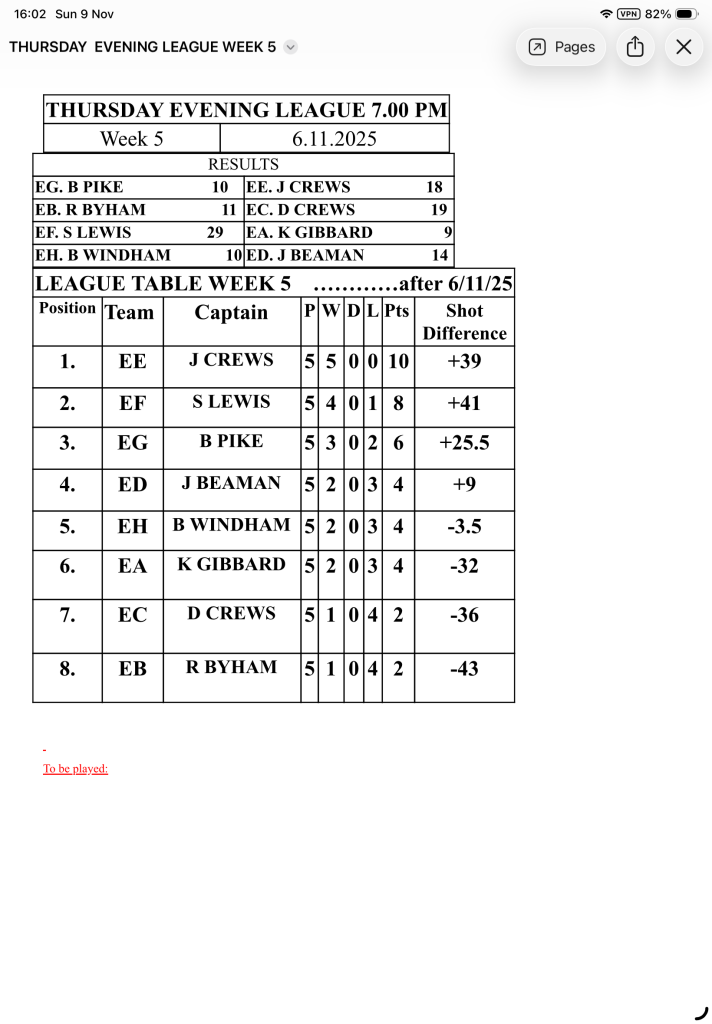 • Tuesday IDB Results Week 5
