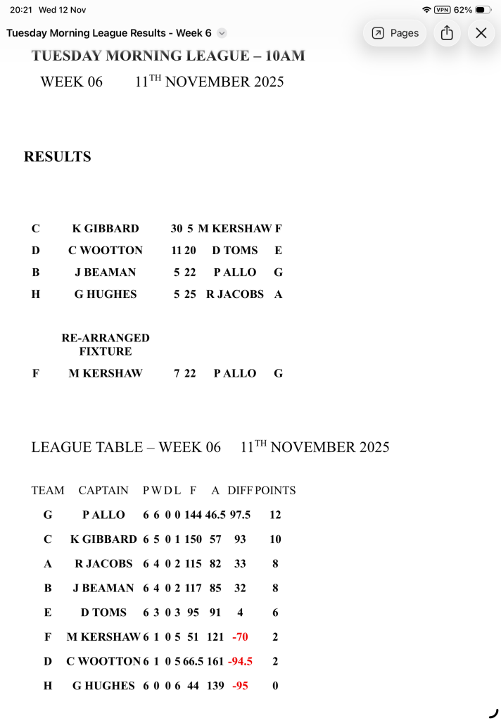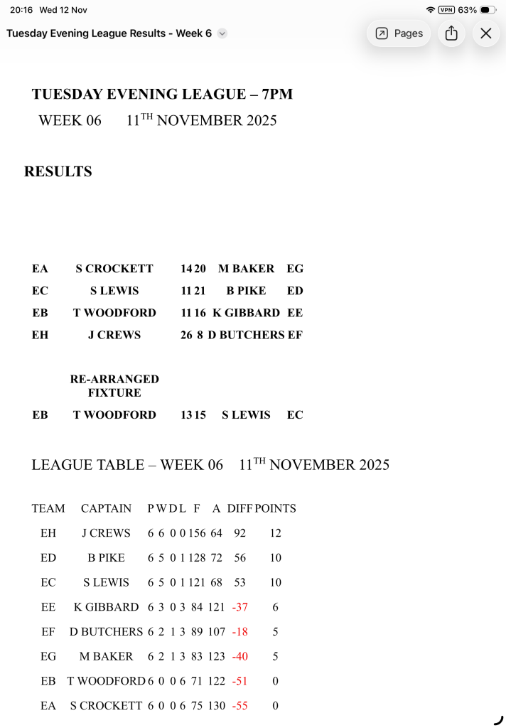 • Tuesday IDB Results Week 6